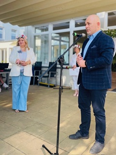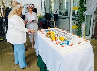 Dzięki wsparciu sponsorów na uczestników wydarzenia czekały liczne atrakcje, poczęstunki oraz upominki. Nie zabrakło też kolorowych dekoracji, kwiatów i wspomnień, które stworzyły atmosferę prawdziwego święta. I oczywiście – jak na urodziny przystało – nie mogło zabraknąć imponującego, ogromnego tortu, który zrobił prawdziwą furorę wśród gości i mieszkańców.W ramach jubileuszu odbyła się również wyjątkowa, symboliczna uroczystość – posadzenie drzewa, które ma być żywym znakiem dziesięciu lat działalności domu i symbolem dalszego rozwoju, trwałości oraz zakorzenienia w lokalnej społeczności. Drzewo to otrzymaliśmy w prezencie od Dyrektor Centrum Usług Społecznych w Koszalinie – Pani Bogumiły Szczepanik, za co serdecznie dziękujemy.