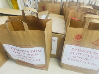 W odpowiedzi na ten apel seniorzy postanowili nie tylko pomóc, ale zrobić to w sposób namacalny i pełen ciepła. W ostatnich dniach przygotowali papierowe torby, które wypełnili artykułami spożywczymi i środkami chemicznymi — produktami niezbędnymi na co dzień, a jednocześnie bardzo potrzebnymi osobom w trudnej sytuacji życiowej.