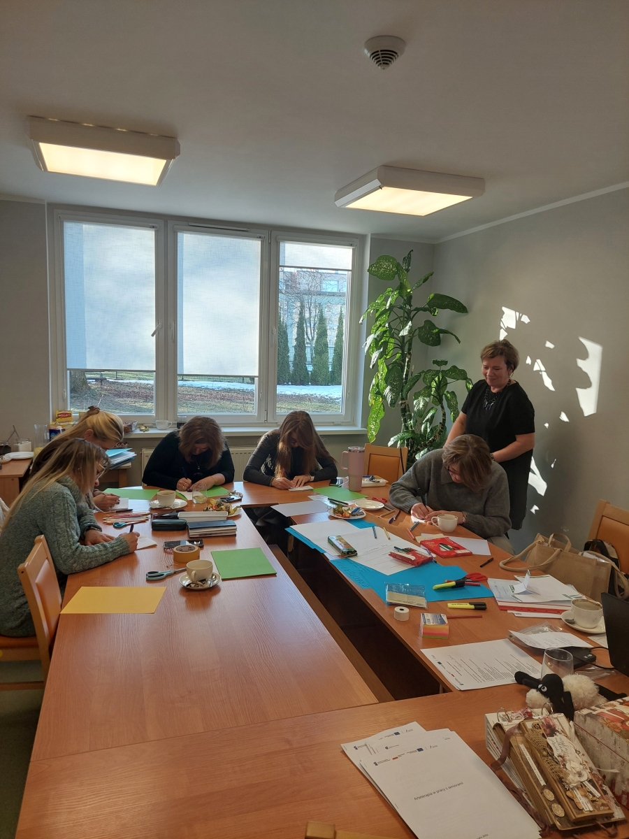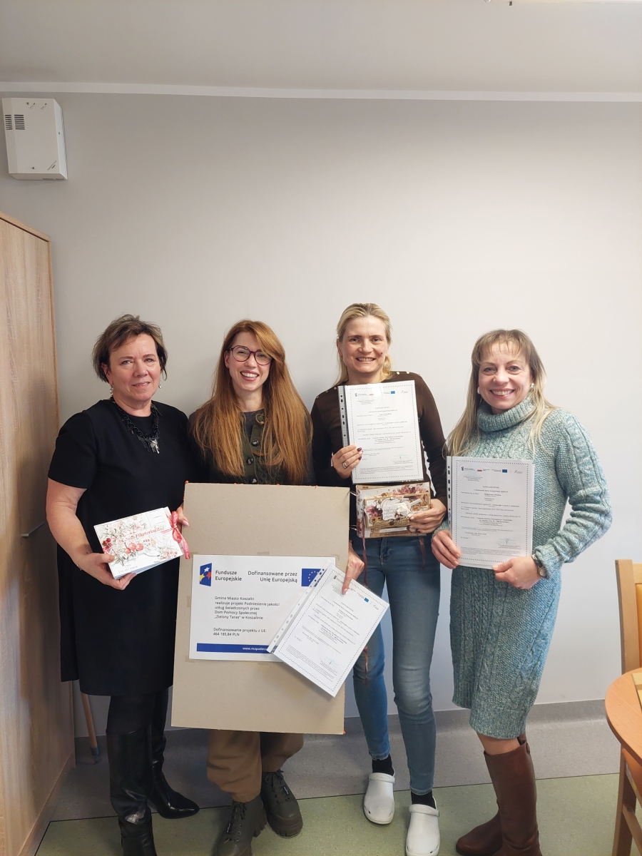 Wracamy do działania!!! W dnach 20.01.2026 r. oraz 23.01.2026 r. w ramach projektu pt. Podniesienie jakości usług świadczonych przez Dom Pomocy Społecznej „Zielony Taras” w Koszalinie odbyło się szkolenie pt. Arteterapia w pracy z seniorami. W szkoleniu wzięli udział pracownicy DPS na stanowiskach terapeuty zajęciowego, instruktora ds. kulturalno-oświatowych i opiekuna. Uczestnicy poznali rolę i znaczenie arteterapii. W ramach zajęć praktycznych stworzyli scenariusze zajęć arteterapeutycznych dla seniorów oraz zapoznali się z koncepcją tworzenia własnej książki artystycznej jako historii życia w ramach wspomagania procesów poznawczych seniorów. Szkolenie zostało przeprowadzone przez Centrum Kariery Zawodowej Teresa Gocałek-Sosnowska ze Szczecinka. Dzięki środkom z Europejskiego Funduszu Społecznego Plus pracownicy DPS, uczestniczący w projekcie, po raz kolejny nabyli nowe kompetencje, które będą mogli wykorzystać w codziennej pracy z seniorami.