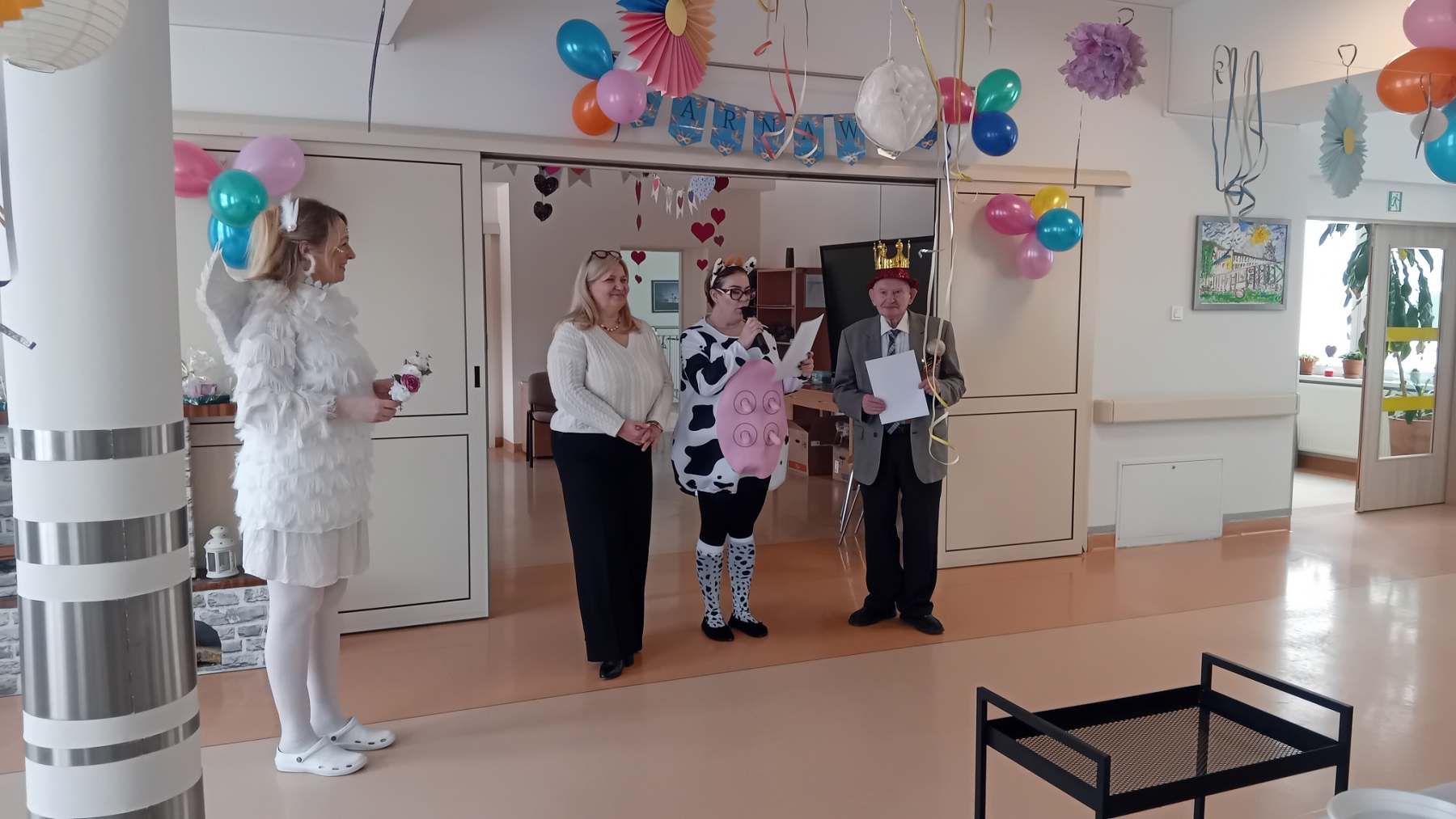 Kreatywność uczestników nie miała granic! Na sali pojawił się dostojny szeryf, tajemnicza Indianka, zakonnica, smerfetka, błyszcząca pani disco, piękny anioł, dostojna Kleopatra oraz czarujące wróżki. Nie zabrakło też humorystycznych akcentów – z zagrody „uciekły” świnka i krówka, wywołując mnóstwo śmiechu i radości.