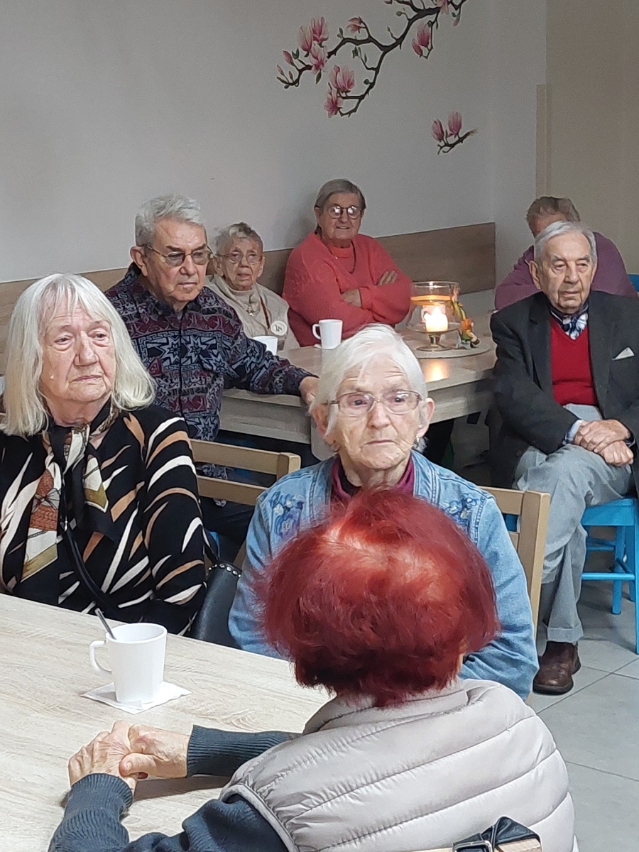 W dniu 17.11.2025 r. po raz pierwszy odwiedziliśmy seniorów w Dziennym Domu Magnolia „Senior+” w Sianowie. Zostaliśmy przyjęci niezwykle serdecznie. Pani Kierownik Dorota Ślubowska oprowadziła nas po ośrodku i przedstawiła swoich pracowników i podopiecznych. Specjalnie na tą okazję upiekła również cudowne ciasto. Po poczęstunku wspólnie zagraliśmy w fasolkowe BINGO. Jedną partyjkę wygrała Pani Czesława Parys. Nagrodą był pamiątkowy kubek i pyszne ciasto. Nie zabrakło też wspólnego śpiewania.