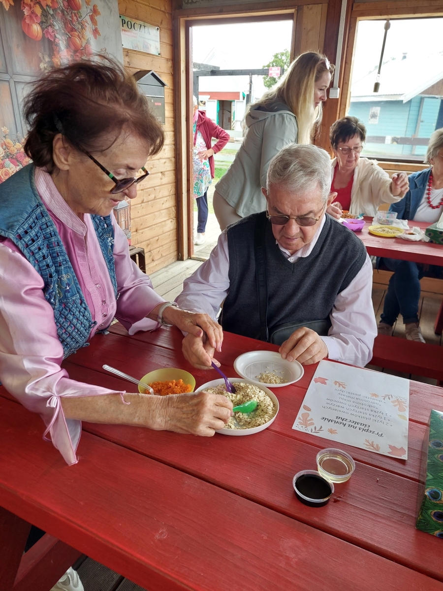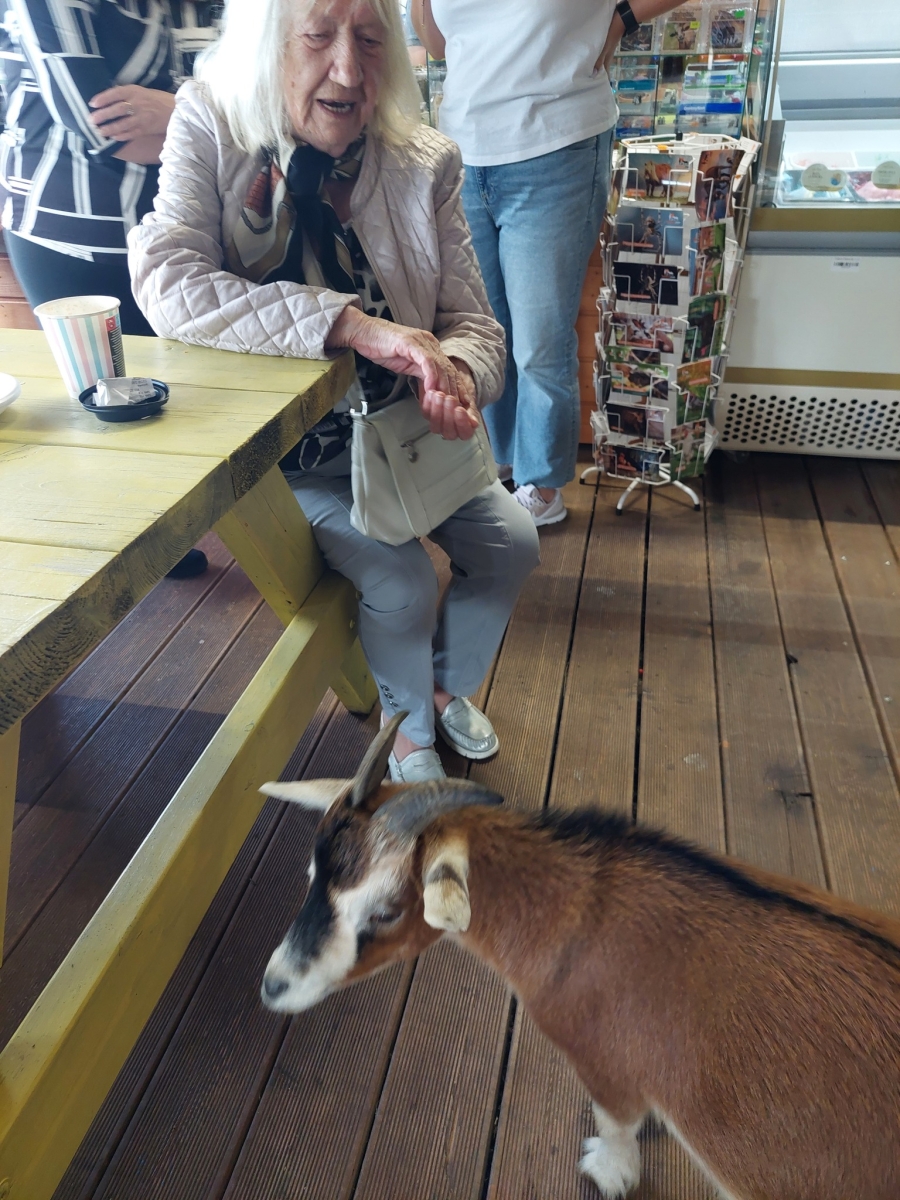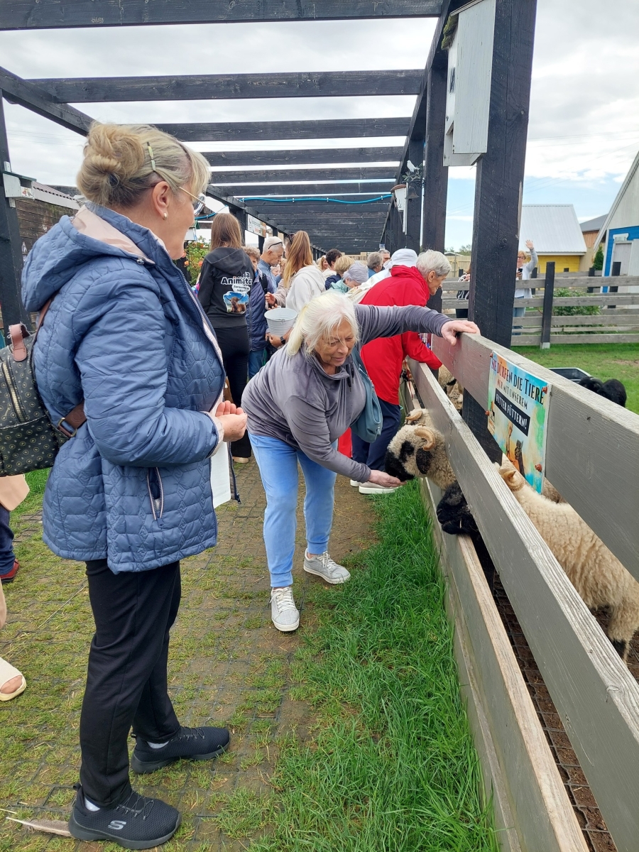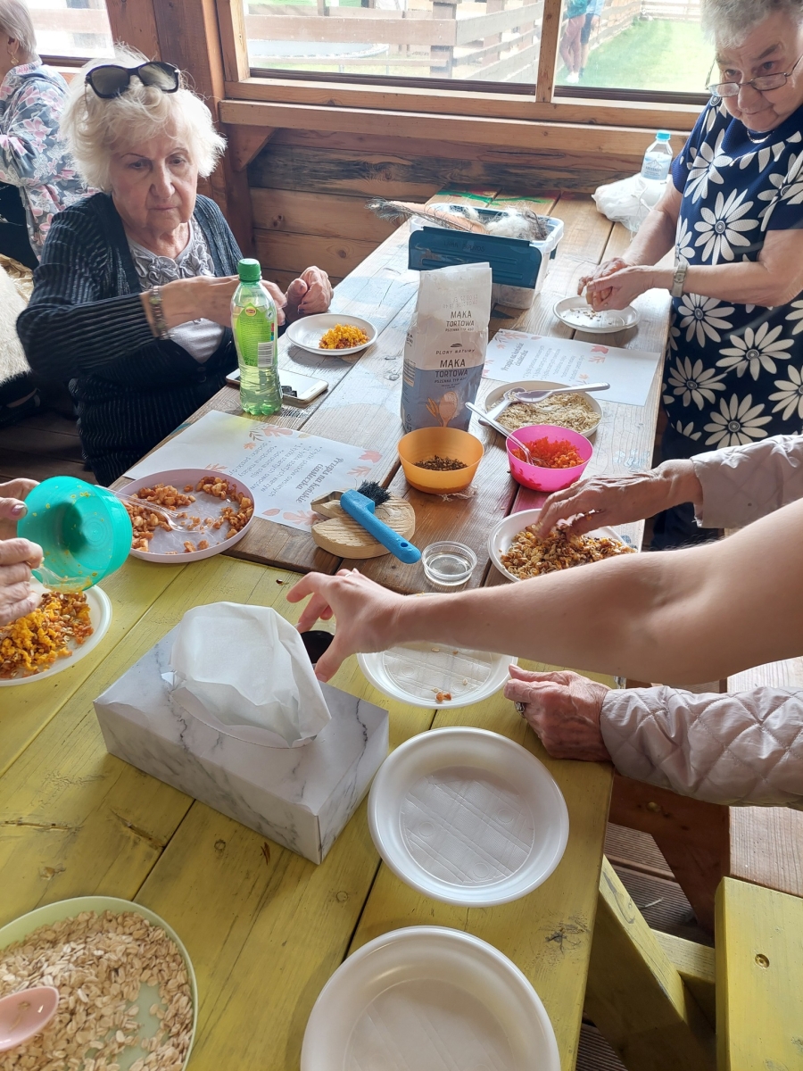 „I rozpoczęliśmy!!! W dniu 12.09.2025 r. seniorzy z Dziennego Domu Złoty Wiek „Senior+” oraz Klubu Różany Zakątek „Senior+” odwiedzili mini z o.o. DonkeySzot Rogozina. Wyjazd został zorganizowany w ramach projektu pt. Podniesienie jakości usług świadczonych przez Dom Pomocy Społecznej „Zielony Taras” w Koszalinie współfinansowanego ze środków ze środków Europejskiego Funduszu Społecznego Plus w ramach Programu Fundusze Europejskie Dla Pomorza Zachodniego 2021-2027 – zadanie 1 Organizacja zajęć i warsztatów dla seniorów. Na miejscu czekało na seniorów wiele atrakcji, w tym warsztaty, na których samodzielnie przygotowali ciasteczka dla zwierząt kopytnych i wysłuchali prelekcji na temat opieki nad zwierzętami, przygotowanych przez osoby prowadzące warsztaty. Seniorzy spróbowali odgadnąć, do których ptaków należą zebrane pióra, sprawdzili, jaka jest różnica pomiędzy runem poszczególnych owiec i z zaciekawieniem przyglądali się wylinkom węży. Seniorów w trakcie warsztatów przywitali pierwsi mieszkańcy DonkeySzot: koty, których jest tu trzynaście, wąż, mopsik oraz urocza koza Milenka, która towarzyszyła seniorom także w trakcie spaceru po zoo. Uczestnicy chętnie przebywali w towarzystwie zwierząt, dotykali, głaskali i karmili. Z dużym zainteresowaniem wysłuchali instrukcji prowadzącej, dotyczących postępowania z wężem, a niektórzy z nich nawet odważyli się wziąć tego pięknego gada w ręce. Po warsztatach seniorzy zwiedzili terrarium i zagrody ze zwierzętami, o których prowadząca ciekawie opowiadała i zachęcała seniorów do karmienia, podając przygotowaną mieszankę. Pogoda również dopisała. To była udana terapia zwierzętami.”