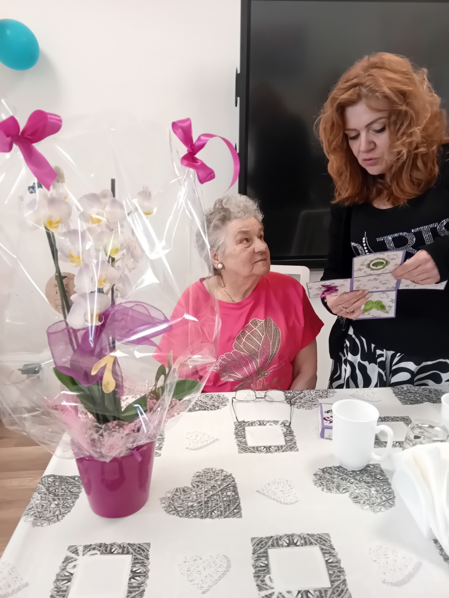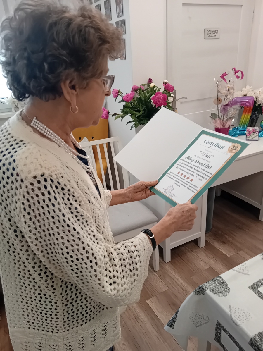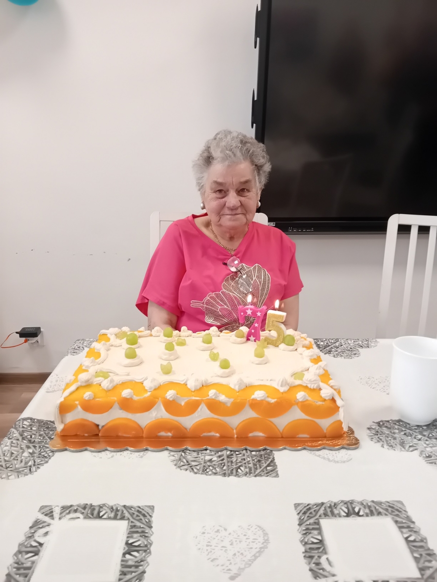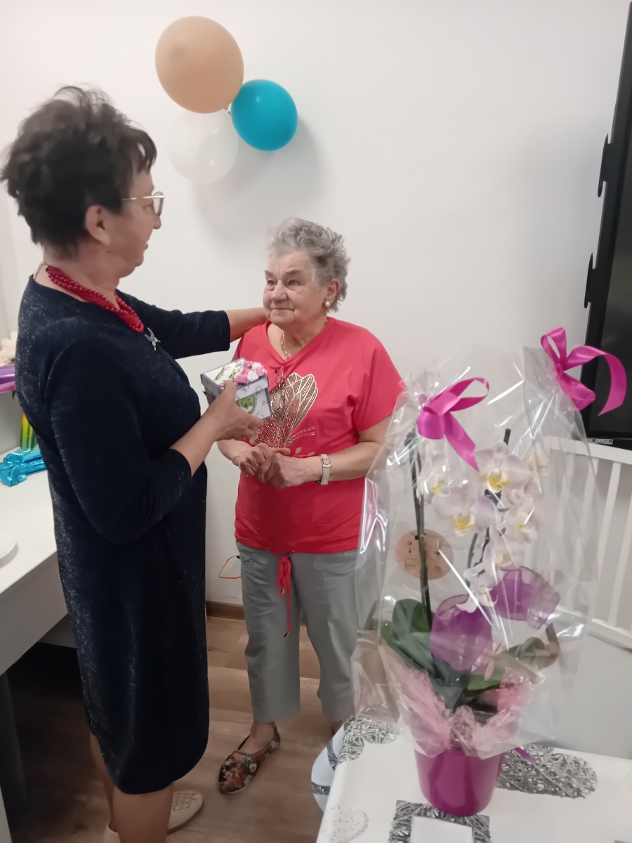 W dniu 12 czerwca 2025 roku w Klubie Różany Zakątek „Senior” obchodziliśmy 75-te urodziny Pani Aliny. Serdeczne życzenia zdrowia, pogody ducha, wielu szczęśliwych lat życia i spełnienia najskrytszych marzeń złożyli jubilatce seniorzy i pracownicy. Uroczystość uświetnił wyśmienity tort przygotowany podczas zajęć z terapii kulinarnej oraz barwne kwiaty i Exploding box – okolicznościowe pudełko z niespodzianką.