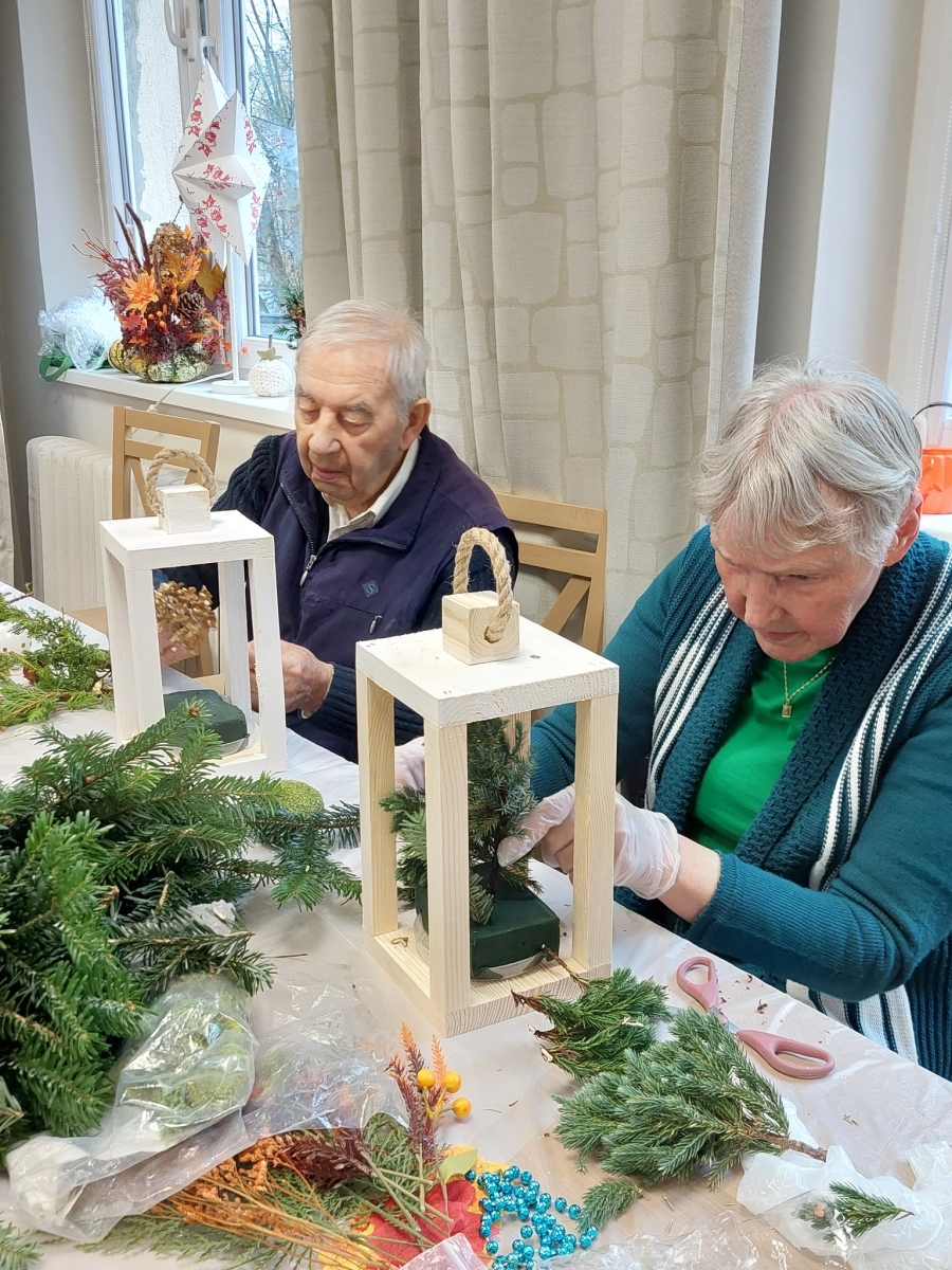 Wykonane samodzielnie stroiki będą cieszyły seniorów przez długi czas.