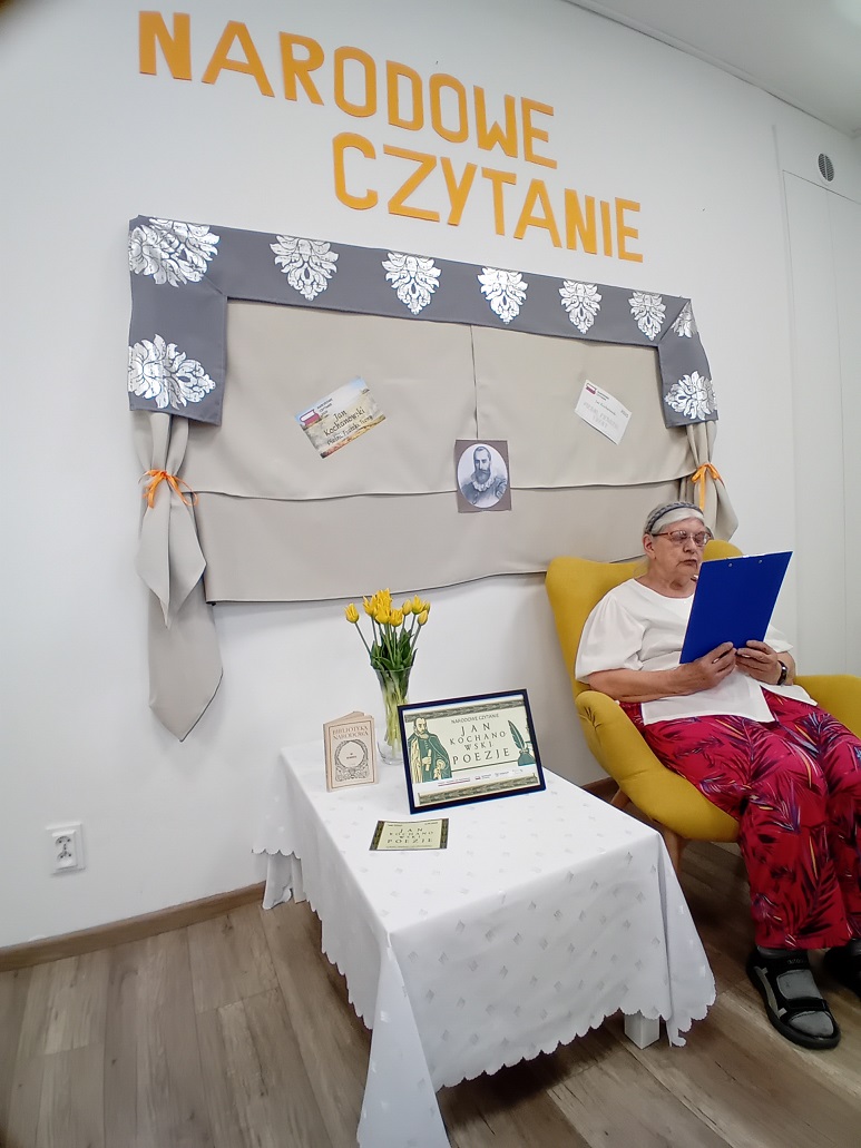 się kolejna edycja pięknej ogólnopolskiej inicjatywy – Narodowego Czytania 2025, zapoczątkowanej przez Prezydenta Rzeczypospolitej Polskiej. Tegoroczne spotkanie poświęcone było twórczosci Jana Kochanowskiego. Wspólnie z seniorami z Dziennego Domu Pogodna Jesień „Senior +”, Dziennego Domu Złoty Wiek „Senior +” oraz Domu Pomocy Społecznej „Zielony Taras” w Koszalinie czytaliśmy fraszki tego niezwykłego poety. Wybrane utwory zaprezentowali przedstawiciele placówek oraz Dyrektor Domu Pomocy Społecznej „Zielony Taras” w Koszalinie – Pani Grażyna Sienkiewicz. Wspólne czytanie stworzyło niepowtarzalną atmosferę – pełną refleksji, uśmiechu i wzruszeń. To wyjątkowy czas, w którym literatura łączy pokolenia, daje radość i buduje poczucie wspólnoty. Dziękujemy wszystkim za obecność i piękne chwile spędzone razem.
