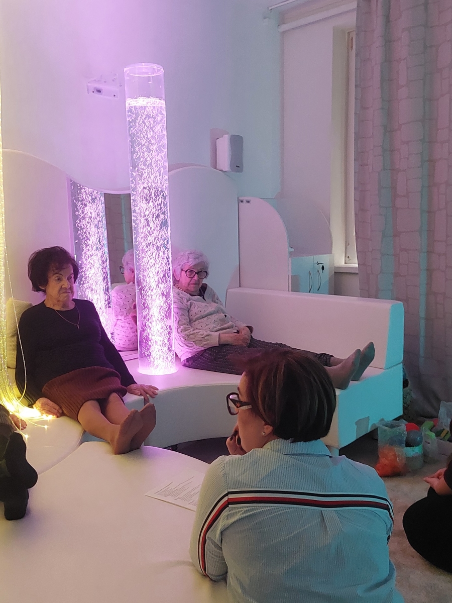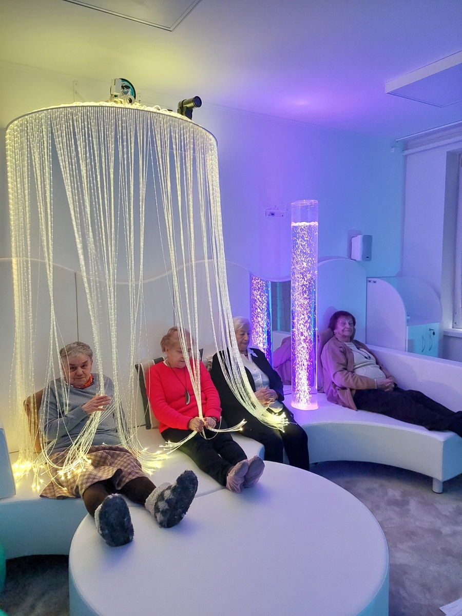 Atmosfera relaksu i odprężenia opanowała seniorów. W dniu 19.02.2026 r. odbyła się pierwsza w tym roku grupowa sesja w sali doświadczania świata przy ul. Odrodzenia 34 w Koszalinie. Wzięli w niej udział seniorzy z Klubu Różany Zakątek „Senior+” w Koszalinie. Pani Gosia (instruktor ds. kulturalno-oświatowych), Kamila (opiekun) oraz Agnieszka (opiekun) poprowadziły zajęcia, stymulując zmysły uczestników poprzez łagodne światło, dźwięk, dotyk i zapach. Kolejna grupa – seniorzy z Dziennego Domu Złoty Wiek „Senior+” w Koszalinie – wzięli udział w zajęciach w dniu 20.02.2026 r. Poprowadziły je Pani Justyna (starszy terapeuta zajęciowy) oraz Renata (starszy opiekun), gdzie tematem przewodnim było morze.