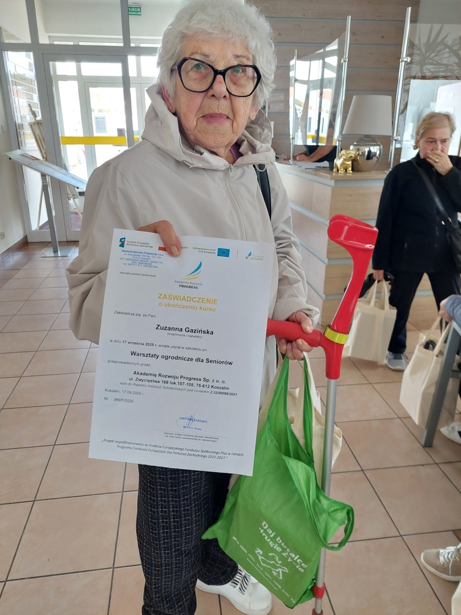 „W dniu 17.09.2025 r. na terenie zielonym przy Domu Pomocy Społecznej „Zielony Taras” w Koszalinie odbyły się warsztaty ogrodnicze prowadzone przez Akademię Rozwoju PROGRESS Sp. z o.o. z Koszalina oraz zajęcia sensoryczne w altanie prowadzone przez terapeutów zajęciowych z DPS w Koszalinie. Działanie zostało zrealizowane w ramach projektu pt. Podniesienie jakości usług świadczonych przez Dom Pomocy Społecznej „Zielony Taras” w Koszalinie współfinansowanego ze środków Europejskiego Funduszu Społecznego Plus w ramach Programu Fundusze Europejskie Dla Pomorza Zachodniego 2021-2027 Działanie: Rozwój usług społecznych, w tym usług świadczonych w społeczności lokalnej (ZIT). Beneficjentem jest Gmina Miasto Koszalin, a Realizatorem – Dom Pomocy Społecznej „Zielony Taras”