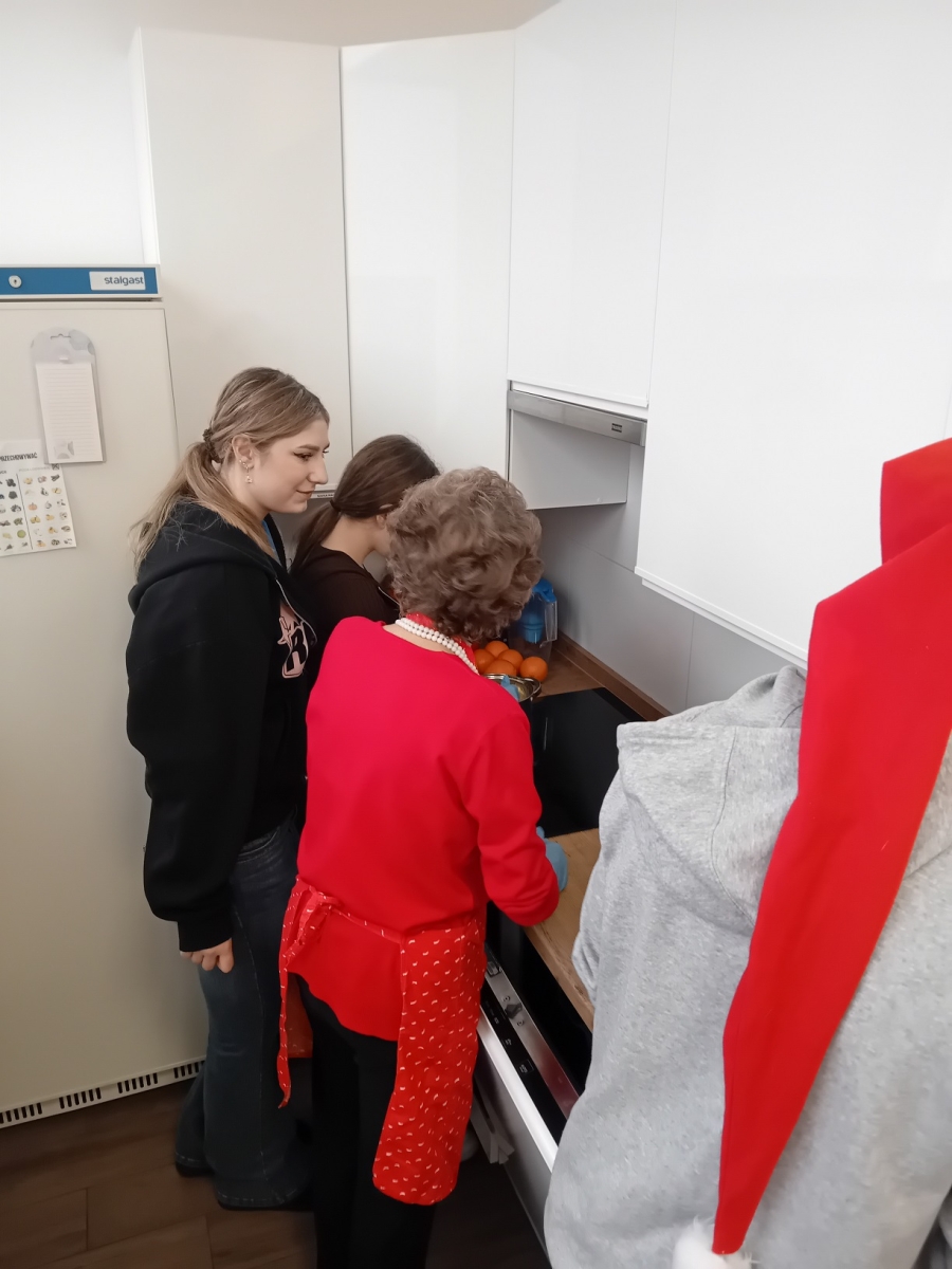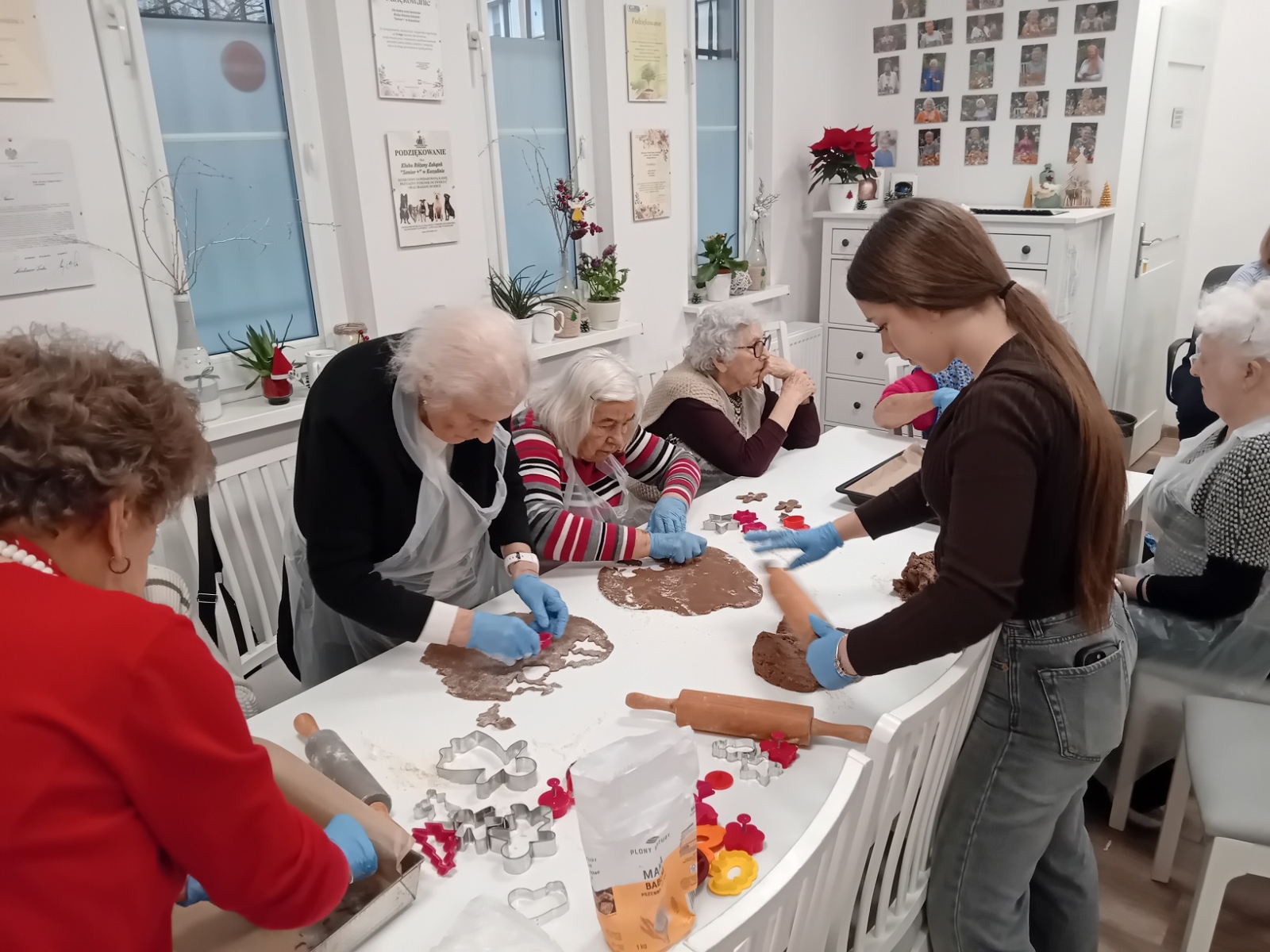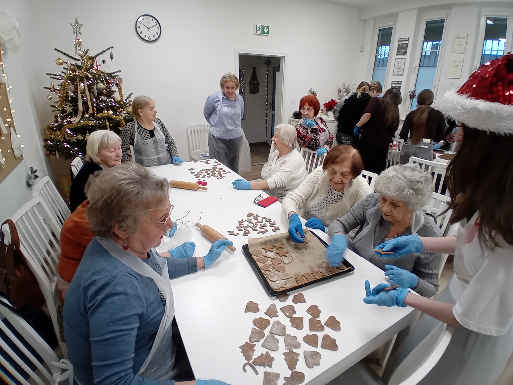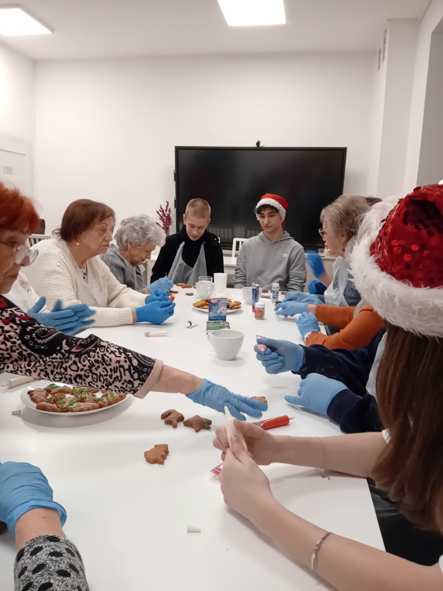 Był to piękny czas integracji międzypokoleniowej – seniorzy i młodzież wspólnie zagniatali ciasto, wykrawali świąteczne kształty i dekorowali pachnące pierniki. Wspólna praca przyniosła dużo radości, uśmiechu oraz ciepłych, świątecznych emocji.
