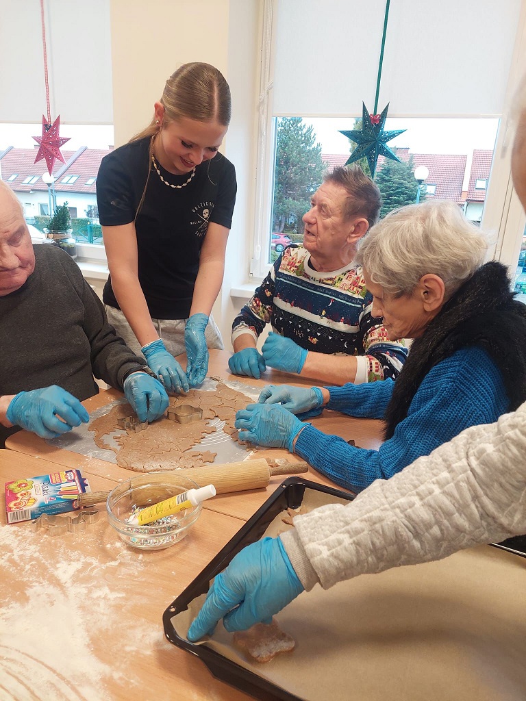 Młodzież przygotowała dla naszych seniorów piękne warsztaty piernikowe – własnoręczne wyrabiane ciasta,dekorowanie, świąteczne aromaty i wiele uśmiechów. To spotkanie pełne życzliwości, ciepła i rozmów pokazało, jak wiele radości daje wspólne spędzanie czasu i wymiana doświadczeń między pokoleniami.